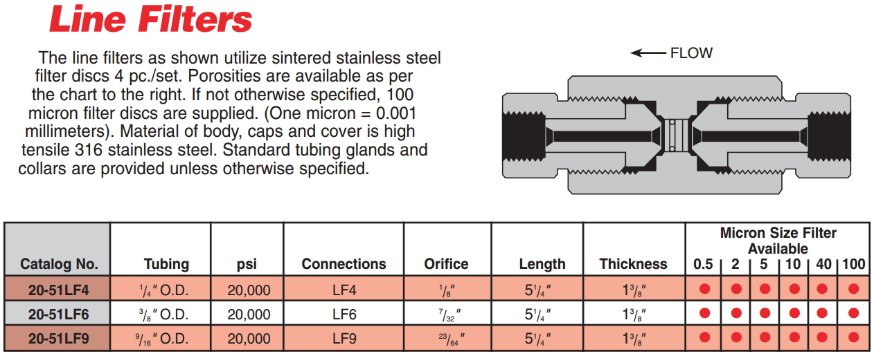 plumbing through 20,000 psi. These needle valves, fittings, line filters, check valves, safety heads, rupture discs,